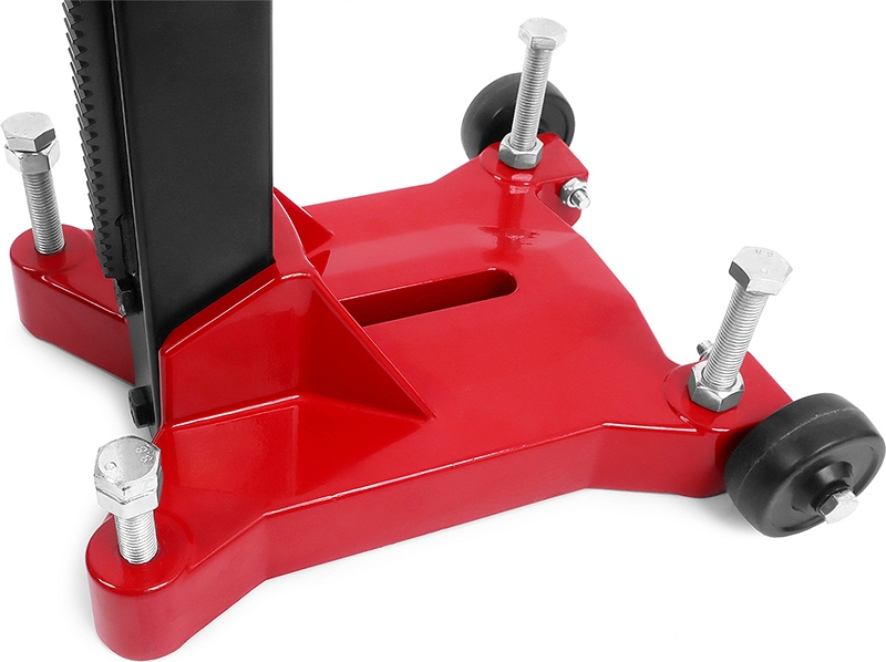 - Комплектуется 4-мя крепежными болтами, боковой рукояткой для переноски стойки, 2-мя удлиненными болтами с головкой под внутренний шестигранник для монтажа верхней рукоятки, 2-мя рожковыми ключами (24 × 27 и 32 × 36), 3-мя угловыми шестигранными ключами, распорным болтом-головкой, рым-болтом, 4-мя юстировочными болтами, фиксатором каретки, рукояткой-штурвалом, проставочной плитой, 2-мя транспортировочными колесами