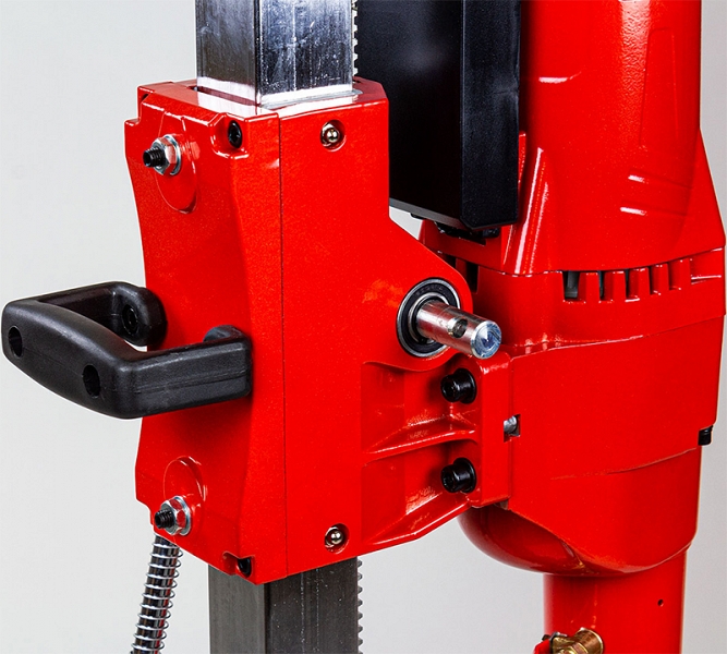 - Встроенные в каретку регулируемые направляющие обеспечивают легкую и плавную подачу сверлильной коронки